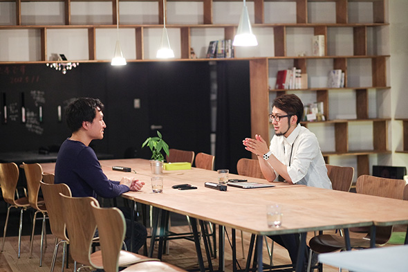 | 中村 | なれればいいですね。 けど、同じの状態でずっと30年40年残しておくという 堅物の喫茶店を作りたいわけではないんです。 数年経つと入居者の人も変わっていく。 その時にco-ba libraryの本のラインナップも 変わるじゃないですか。 それが面白いなと思ったんですよ。 |