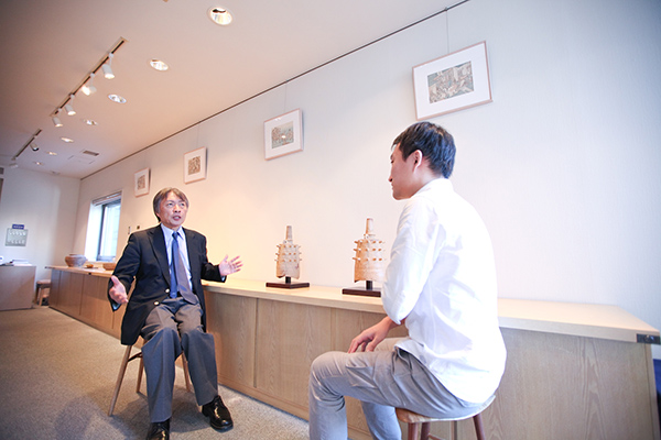 | 加茂 | たしかにこの階だと落ち着いて見ることができますね。 1階だとお店の前を通る人の目が気になりそうですし。 浦上さんは独立される時、この日本橋にお店を出すことは 最初から考えられていたんですか。 |