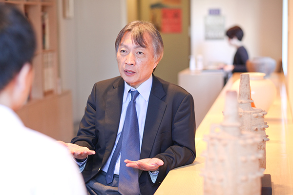 | 浦上 | そうですね。僕が修行した繭山龍泉堂は 大きな自前のビルを持っているところなんですけど、 基本的に美術商というのは、 大手といっても規模が小さいんです。 要するにインディビジュアルな商売なんですよ。 繭山龍泉堂も私がいたころは 男性だけでも10数名いたんですけど、 1人1人がなんとか商店、なんとか商店、と お店を持っているようなものなんです。 普通の会社のように仕入れ部があって、 販売部があるというよりは、 1人の人が買ってきて、自分のお客さんに売る、 という傾向が強いですね。 |