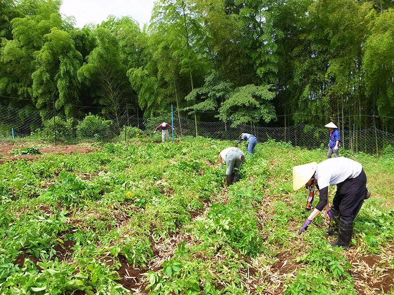 肥料整理、シソ摘み、いも掘り、草むしり